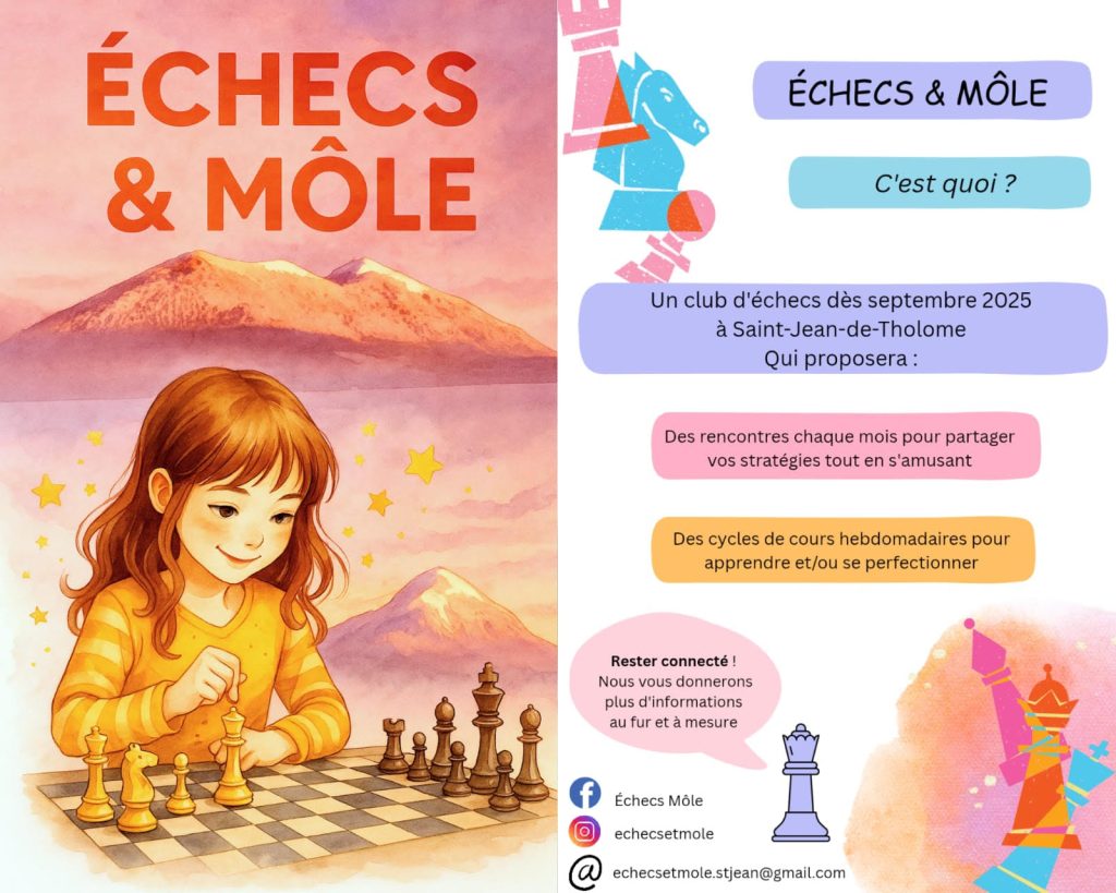 Échecs & Môle Association destinée à animer des cours et des parties d’échecs, chaque mois. Page Facebook